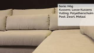 Deze mooie loungebank (298 x 242 cm) is uitgevoerd in de stof Bloq lichtgrijs. Dit is een zacht geweven stof die stof, vuil- en waterafstotend is en daardoor voor intensief gebruik ideaal is. Deze bank heeft een stevig zitcomfort en zachte rugkussens. Je kan je zitcomfort zelf bepalen door gebruik te maken van de bijpassende rugkussens. De Hög heeft 10 rugkussens waarvan 5 sierkussens en heeft 4 zitkussens, allen voorzien van rits. De bank heeft 8 dunne en hoge ranke metalen poten en 2 draaisteunpoten, waardoor de bank erg ruimtelijk oogt.